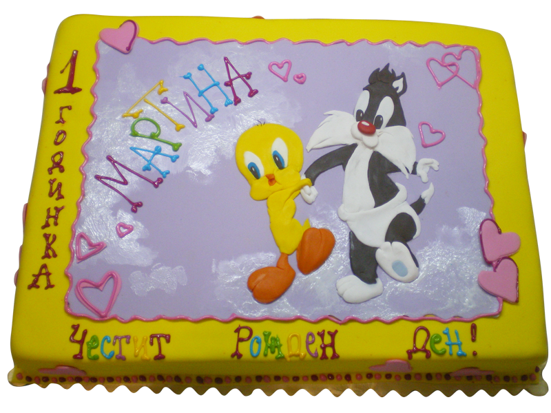 Торта от захарно тесто, със захарни фигурки. Цената е за порция. Минимално количество 20 порции.
