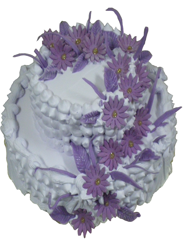 Двуетажна торта със захарни цветя и сметанова украса. Посочената цена е за порция.Минимално количество 25 порции.
