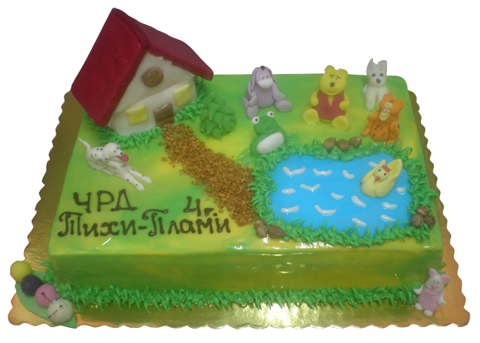 Торта със сметанова украда, захарни фигурки и играчки